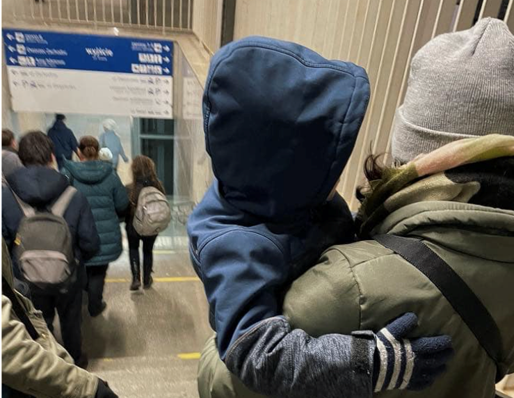 Svitlana*, a Ukrainian mother of two, carries her youngest in her arms as she and her children follow their hosts through a strange building in a foreign country.