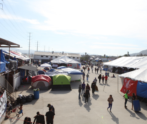 At first, you may not have known that thousands of people were sheltered in El Barretal, the vacant event space on the outskirts of Tijuana, Mexico. But when you walk through the surrounding buildings and the security vetting those going in and out, you would have found rows and rows of tents create islands on the concrete.